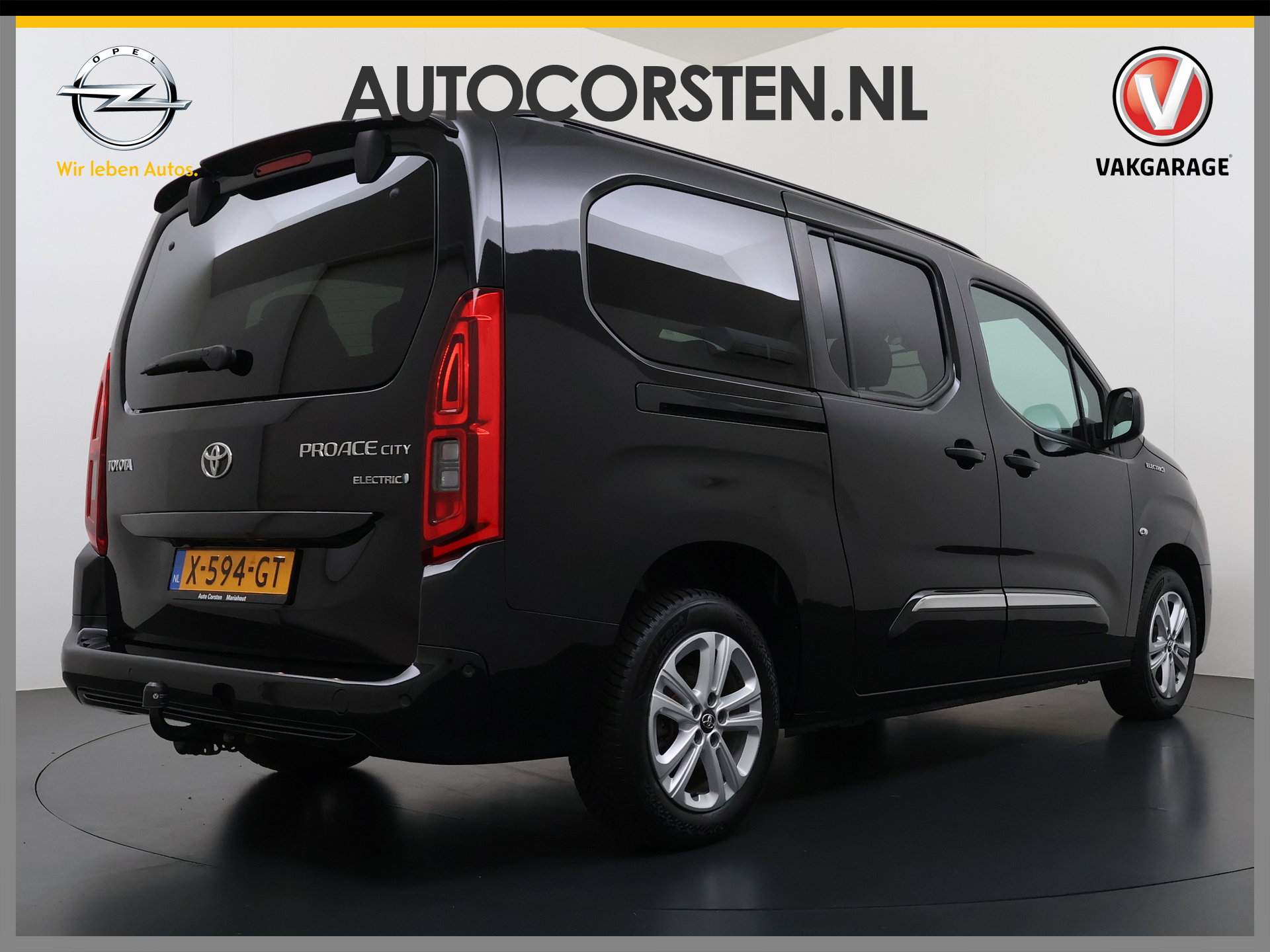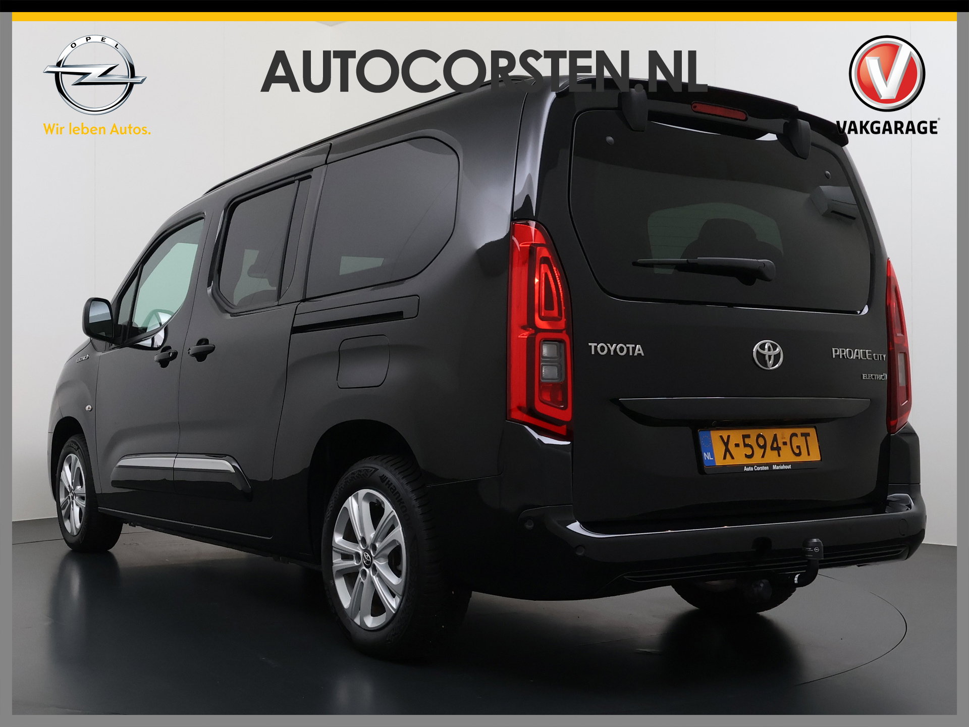 Topprestaties zonder emissies: de Toyota PROACE CITY Verso Electric is een elektrische auto zonder compromissen. Gas geven is er met de elektromotor niet meer bij. Stil snelheid maken wel! Een handige voorziening op deze auto is de elektrische achterklep die u op afstand kunt openen. Passagiers stappen gemakkelijk in en uit door de schuifdeur met z'n ruime opening. Tot de voorzieningen van deze auto behoren 16 inch lichtmetalen velgen, adaptieve mistlampen, dakspoiler, donker getint glas achter en verstelbare lendensteunen.